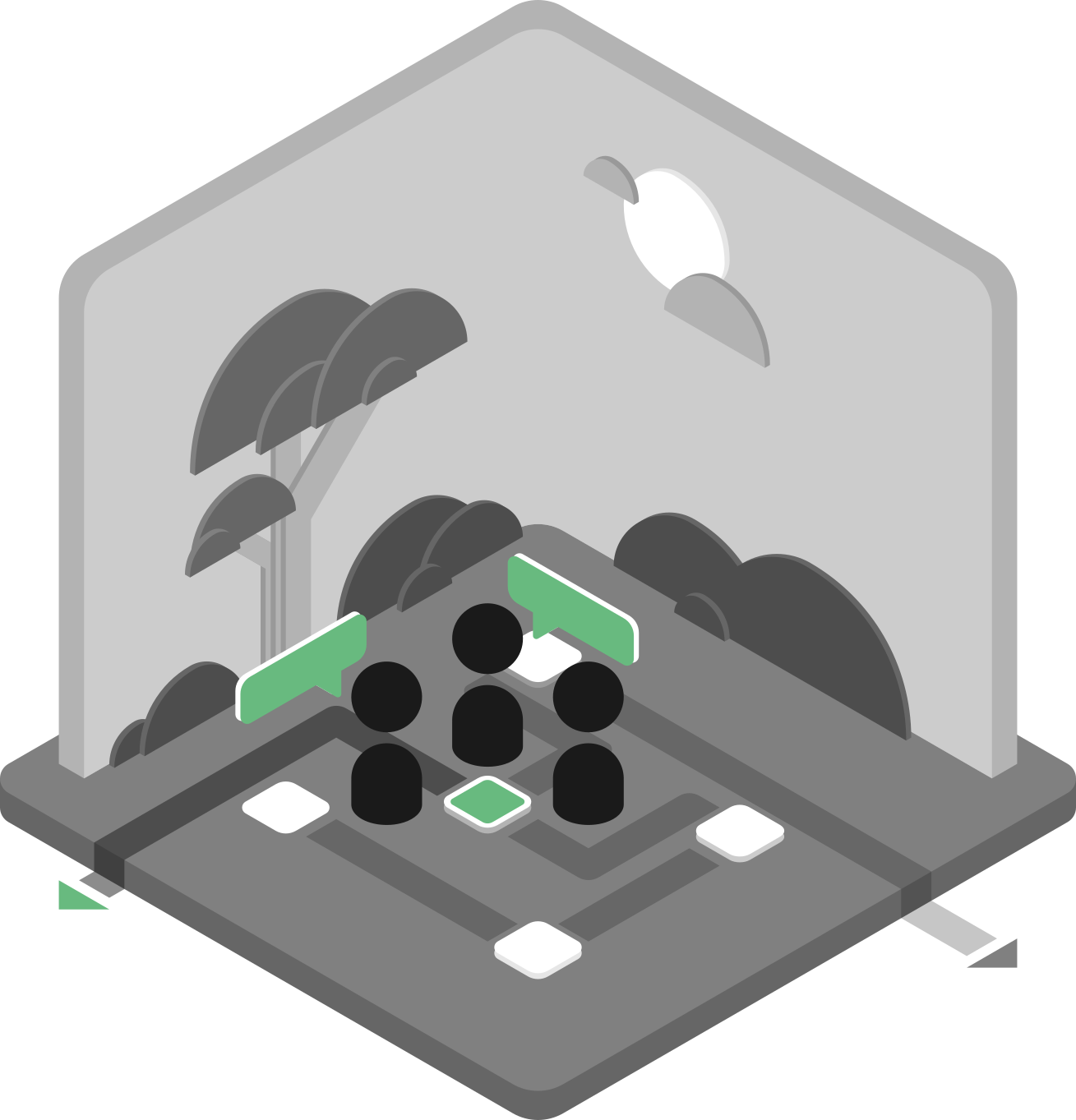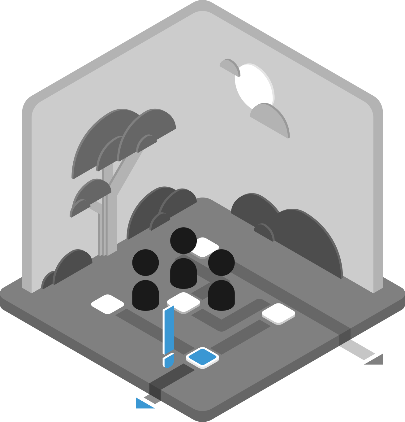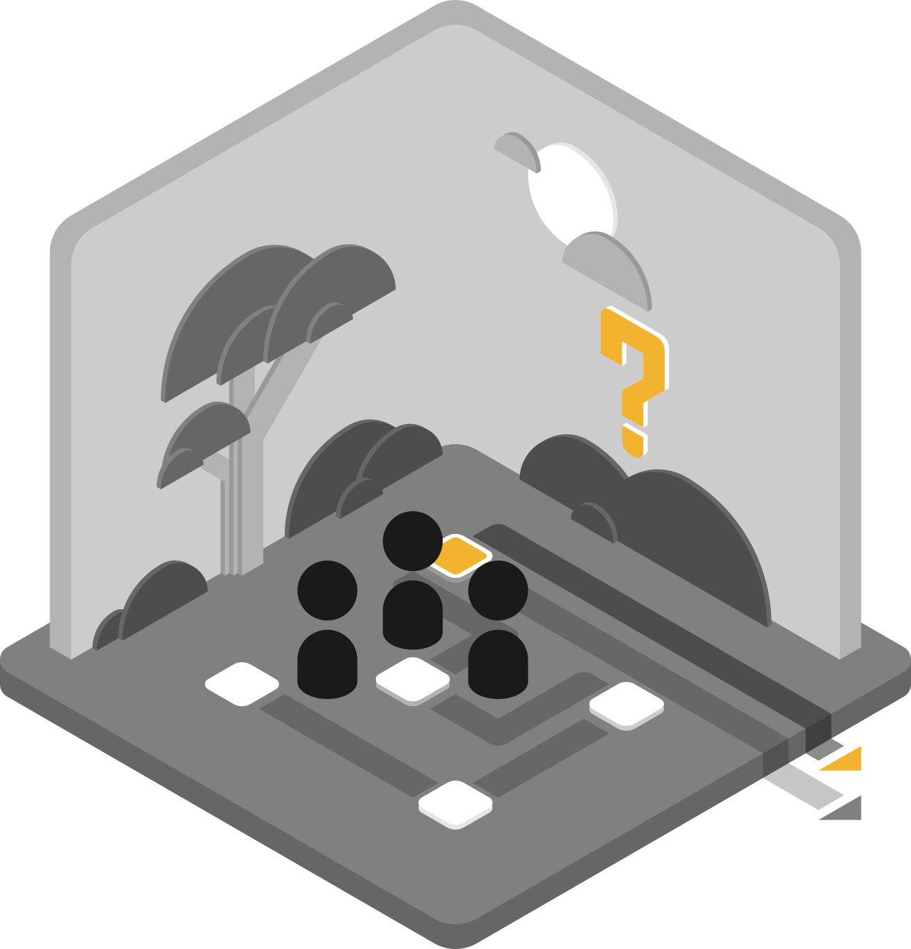 Lors d’une session, les participant·es se rassemblent afin de concevoir ensemble un récit interactif.