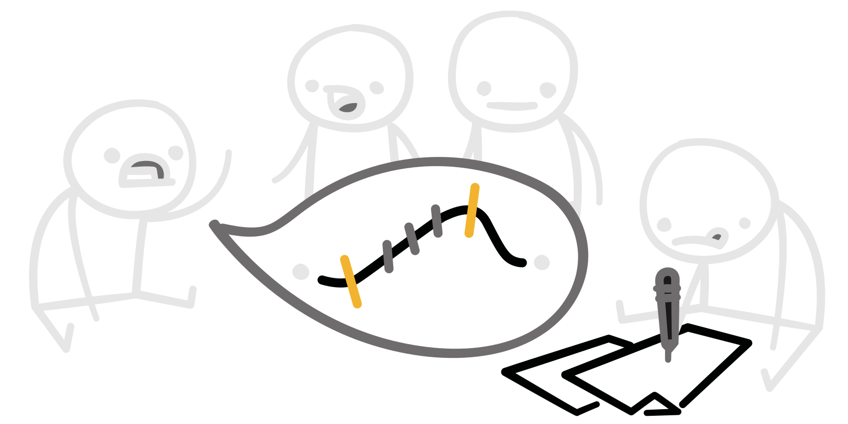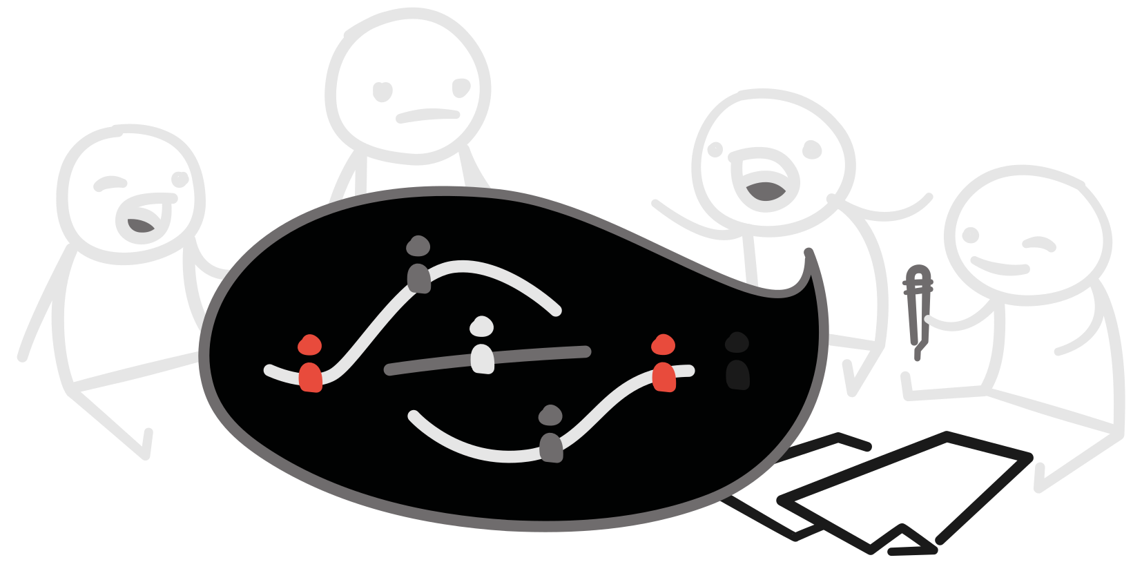 L’équipe détermine les axes de narration ainsi que leurs protagonistes afin de cadrer l’intrigue principale de l’histoire.