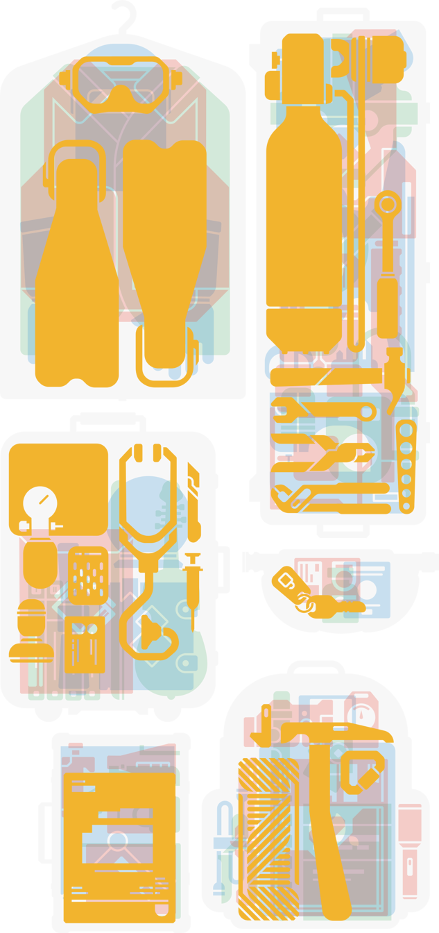 Le groupe prend connaissance des différentes sections : mécanique, biologique, synthétique et économique, ainsi que leur compartiment. Puis les membres de l’équipe définissent, sur la fiche système, les qualifications de leur personnage à travers leur index.